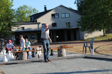 Sperrige Ausrüstung, langwierige Vorbereitung oder komplizierte Regeln – NICHT beim BOULE, statt dessen jede Menge Spaß. Die Spielidee ist simpel: Die Kugeln der eigenen Mannschaft sollen näher an der kleineren Zielkugel (auch „Schweinchen“ genannt) platziert werden, als die Kugeln des Gegners. Um möglichst viele Punkte zu erspielen ist eine Kombination aus Technik und Geschicklichkeit gefragt. So können die Kugeln geworfen, gerollt werden oder durch gezielte Würfe die Kugeln des Gegners aus dem Spiel geschossen werden. Auch eine Platzierung der eigenen Kugel vor dem Schweinchen ist ein taktisches Element des Spiels. In jedem Fall ist Spannung bis zum letzten Wurf garantiert, da dieser das Spiel z.B. durch verschieben der Zielkugel auf den Kopf stellen kann. Außerdem werden bei Boule alle Sinne angesprochen, die Körperhaltung trainiert und die Hand-Augen-Koordination geschult und die Konzentration gefördert. Boule ist eine ideale Freizeitbeschäftigung nicht nur für alte Männer im Park, sondern ein kommunikativer Sport für jedes Alter, bei dem sowohl Kindern als auch Senioren jede Menge Spaß zusammen haben.