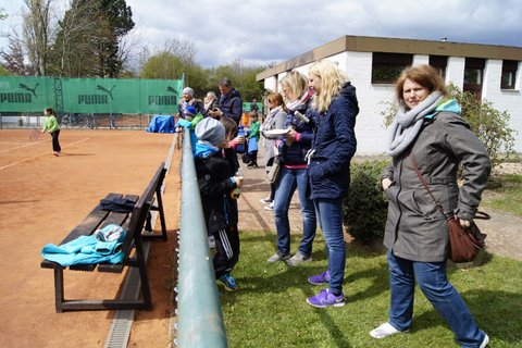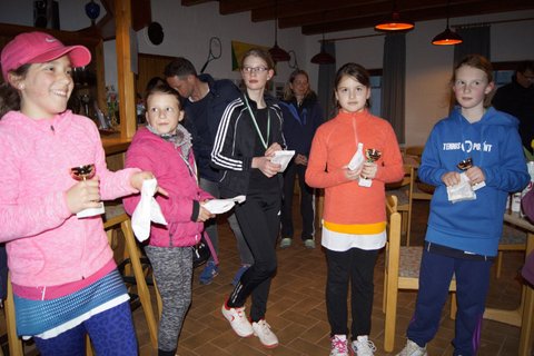 Am Sonntag ging es bereits um 09.00 Uhr los. Die Temperaturen lagen bei 4°C. Die Kinder und Jugendlichen störte es nicht. Selbst Schnee- und Graupelschauer konnte die Spieler nicht stoppen. Während sich die Eltern und Geschwister lieber im Tennisheim wärmten, trauten sich einige sogar im T-Shirt und kurzer Hose auf den Platz.