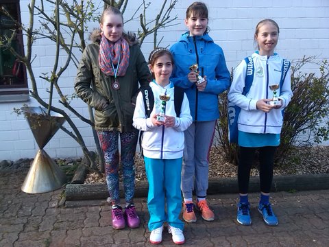 Vier Mädchen traten in der U14 an. Hier gewann Vera Darmanyan. Platz zwei belegt Hannah Geiger (beide HTC) vor Celine Frambourg (Königslutter) und Polina Dmitrovskaya (SV Sandkamp).